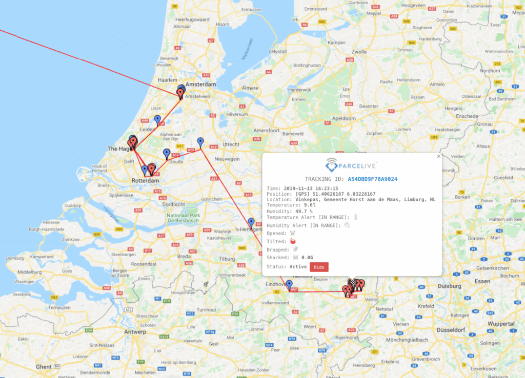 Nevertheless, if anything were to go wrong that would jeopardise the confectionery in transit, the customer is now in a position to act quickly to ensure product integrity and to resolve any disputes around late or damaged goods. Other supply chain routes may not be as uneventful as the one depicted above. In case of a deviation of the set parameters, ParceLive will provide real-time alerts that can be sent by text, email, or phone. This often allows the problem to be fixed before the temperature is getting too warm or too cold.