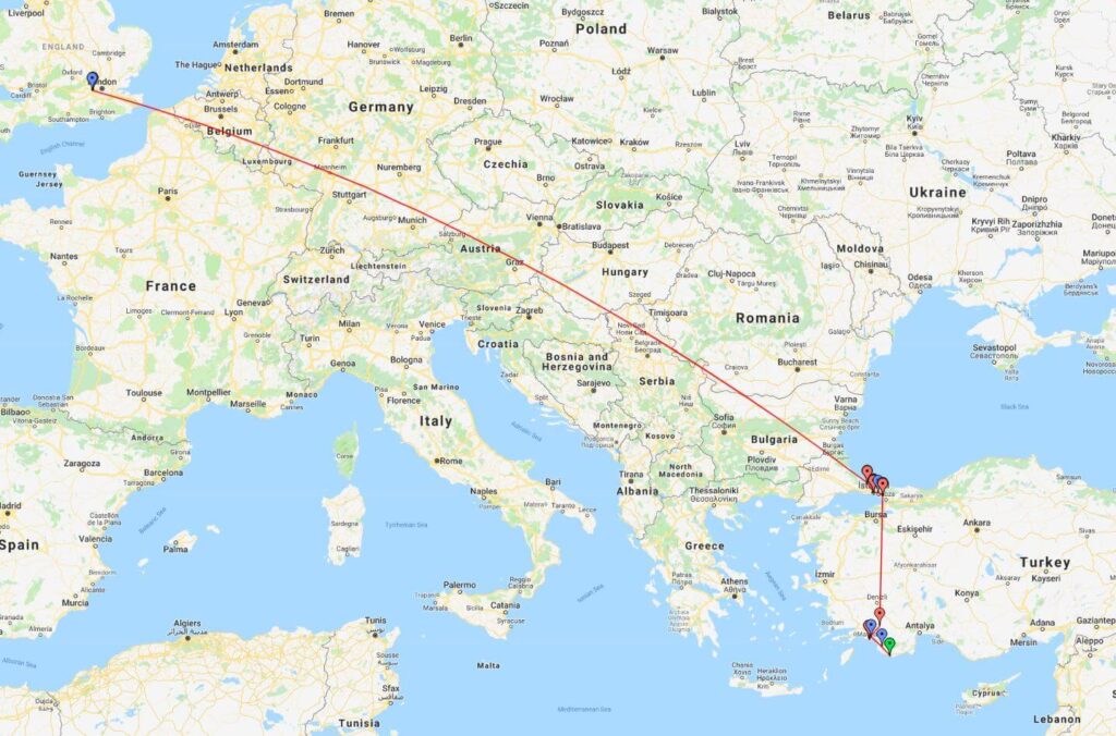 Nudrat’s journey began on the 2nd August when she flew from London, Heathrow to Istanbul, Turkey.