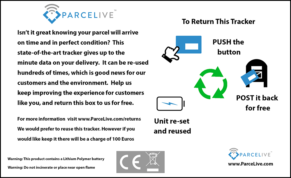 It will be an iterative process, as we learn which combination is most effective, and as people learn what the tracker is for. We will continue to test and learn, taking into consideration your branding, cultural differences with your customers and son on. Our design nudges will be even more effective in partnership with you. From sharing data with your customers to making donations to your chosen charity for every unit returned, there are plenty of incentives we can offer that will crystalise the benefit of using Parcelive.