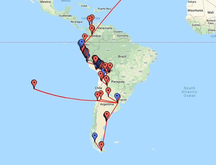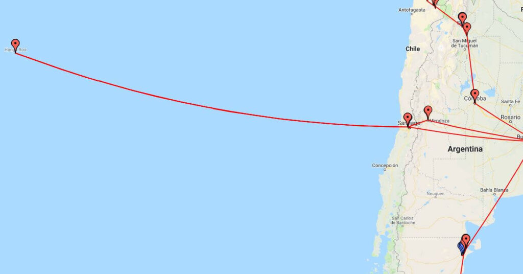 Nudrat’s journey began on the 18th of November, 2018, where she flew from London, Heathrow, to Santiago, Chile. The ParceLive tracker began recording data on the 26th November when Nudrat had travelled to the south of Chile, Puerto Natales. From here, Nudrat made here way through Argentina where she enrolled in some Spanish classes, immersing herself in the local culture. As Christmas approached, Nudrat had not made any concrete plans but while researching flights she found a bargain deal to Easter Island, and thought this would be an exciting option.