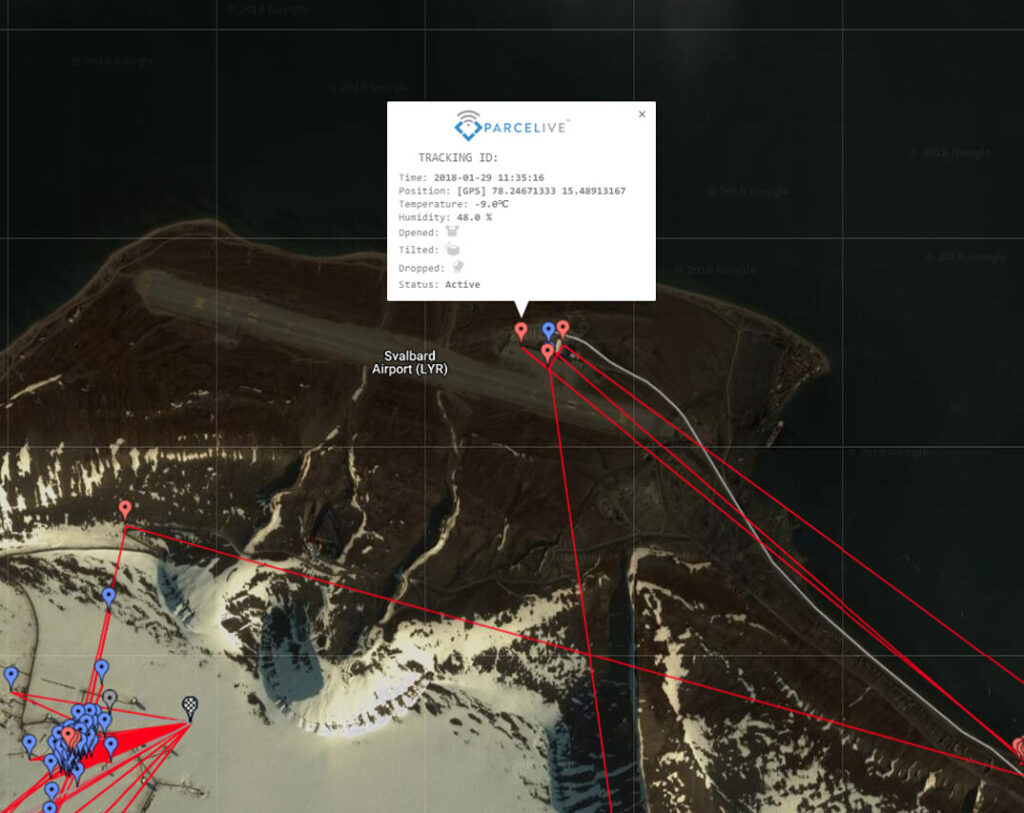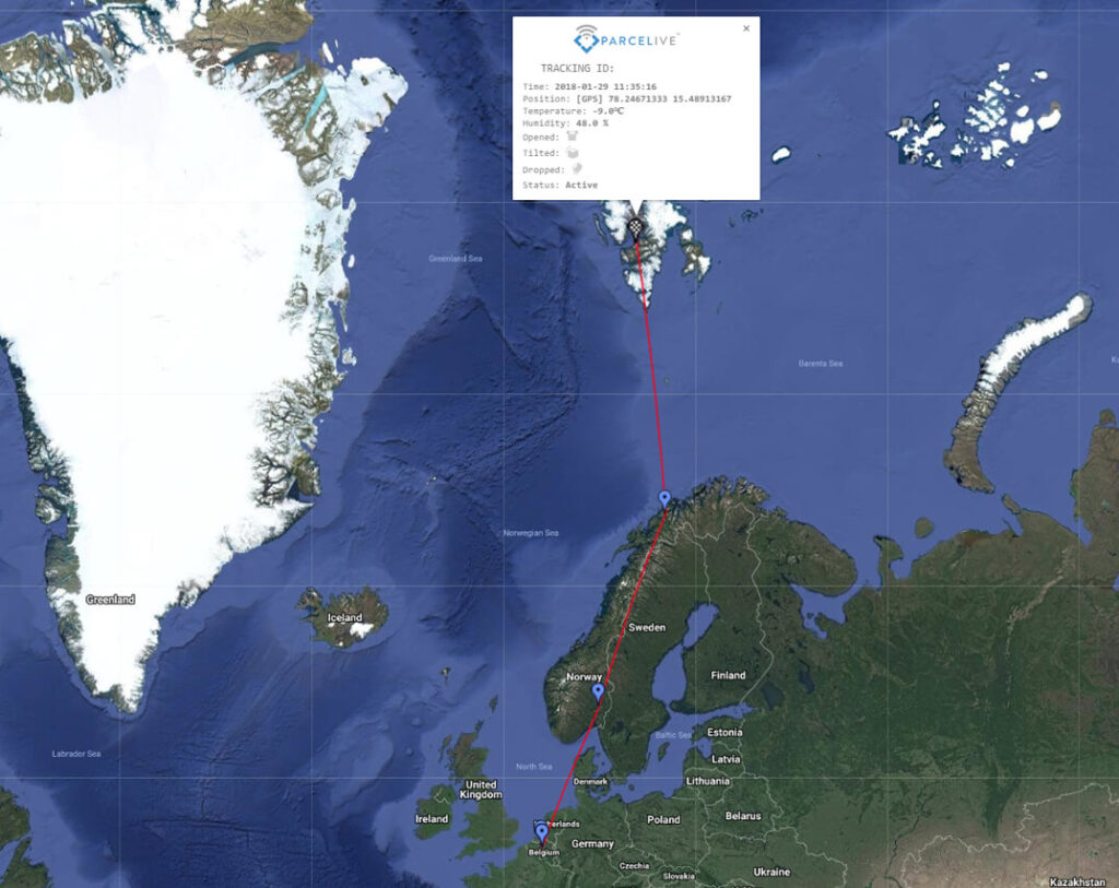 Sitting just 700 miles from the North Pole Svalbard was the destination for this shipment, hitting a temperature low of -10 Centigrade or 14 Fahrenheit along the way. With industry leading design and components ParceLive ensures that users are still able to gain real time visibility with GPS accuracy on their supply chain even in the most extreme locations on the planet.