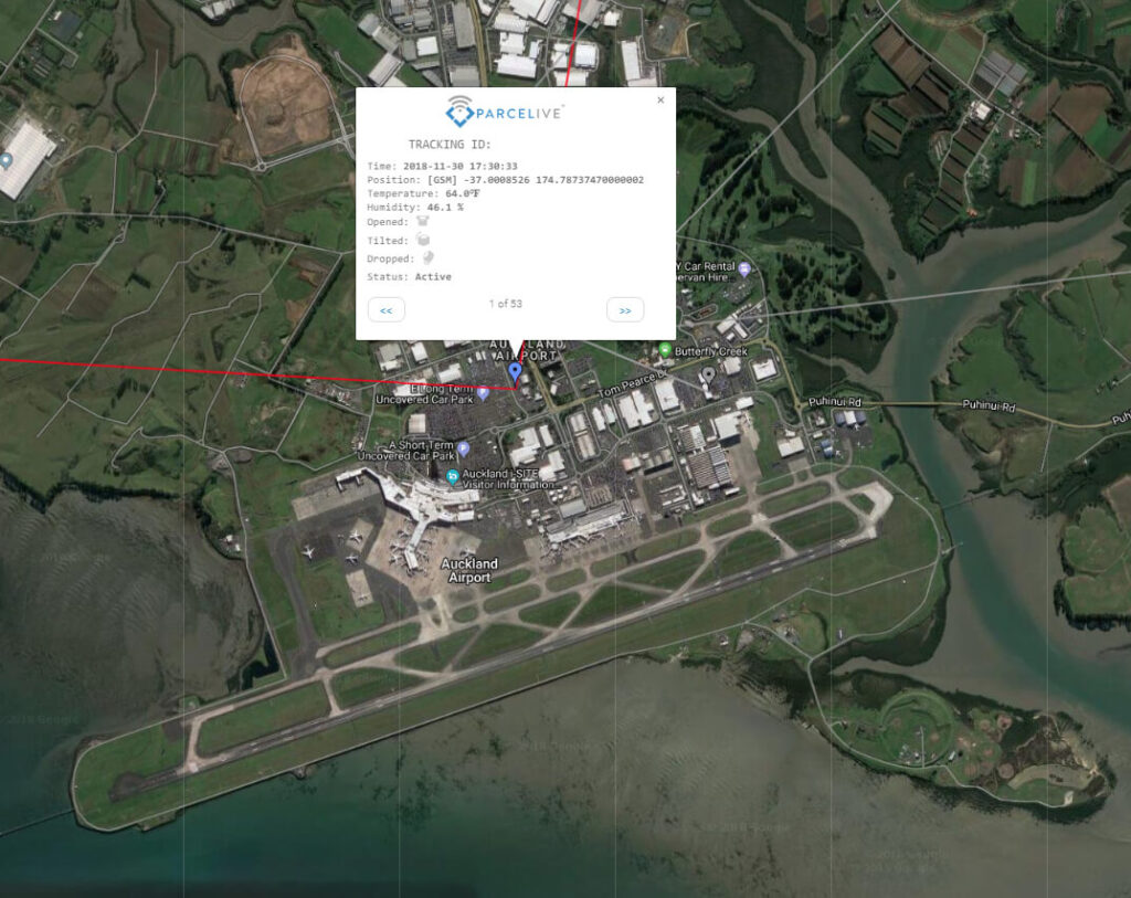 Making the long journey across continents and oceans this shipment travelled the 11,454 miles from Innsbruck to Auckland with a quick stop in Qatar. With many supply chain incidents occurring as shipments pass through airports ParceLive gives full visibility on what is occurring at these locations. As this shipment arrived in the pacific island nation it hit a humidity high of 72%.