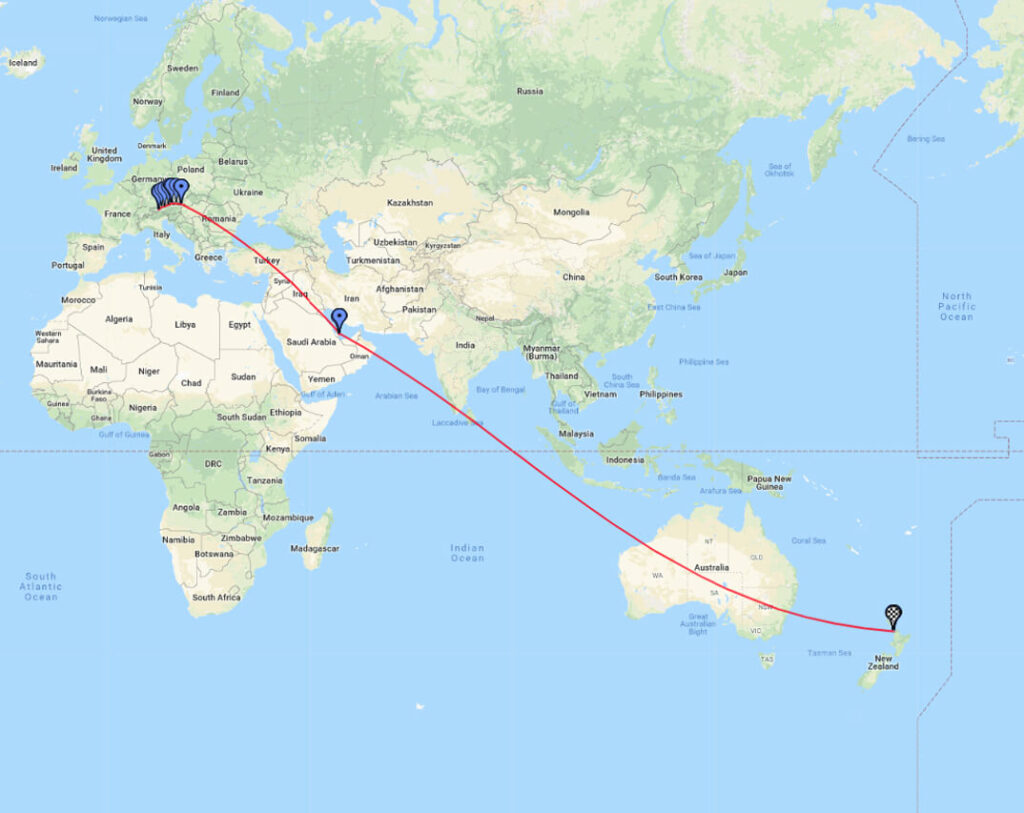 Austria ⇒ New Zealand via road and air